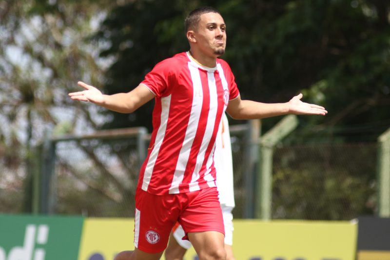 Porto Feliz (SP), 06/01/2025 – DESPORTIVO BRASIL-HERCÍLIO LUZ – Santarém comemora gol do Hercílio Luz. Partida entre Desportivo Brasil e Hercílio Luz pela segunda rodada da Copa São Paulo de Futebol Junior, nesta segunda-feira (06) no estádio Ernesto Rocco em Porto Feliz, interior de São Paulo.
